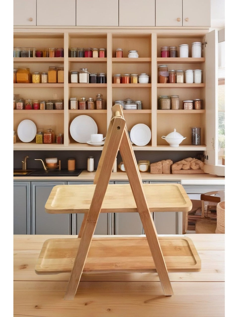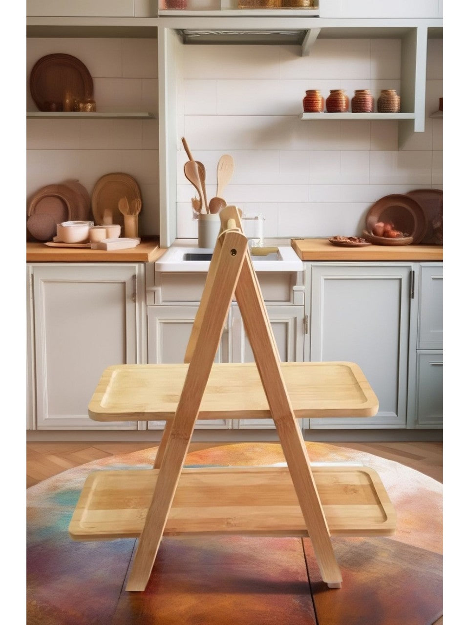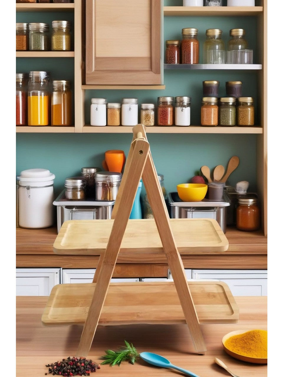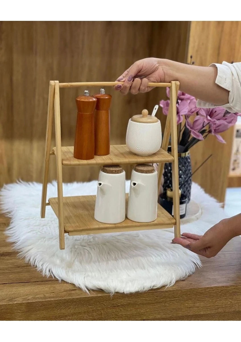 2 Katlı Bambu Dekoratif Sunumluk ve Baharat Standı