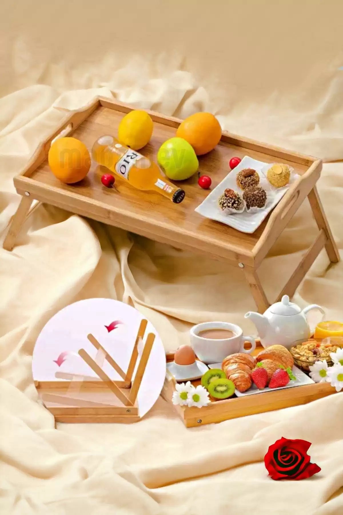 Lüx Bambu Katlanır Ayaklı Tepsi